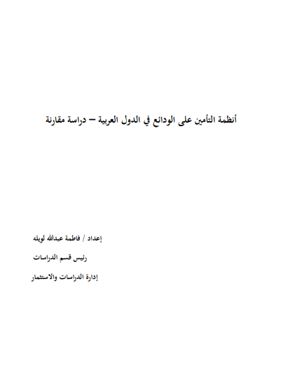 الأخبار والدراساتالدراسات‫أنظمة‬‫ التأمين‬ ‫على‬ ‫الودائع‬ ‫في‬ ‫الدول‬ ‫العربية‬ ‫–‬ ‫دراسة‬ ‫مقارنة‬